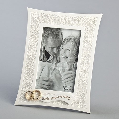 8.75"H LACE 50TH ANNIVERSARY FRAME HOLDS A 4X6 PHOTO Materials RESIN/STONE MIX Dimensions 8.75"H