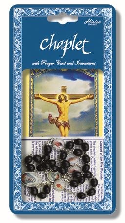 The Five Wounds Deluxe Chaplet with Black Wood Beads Packaged with a Laminated Holy Card & Instruction Pamphlet
