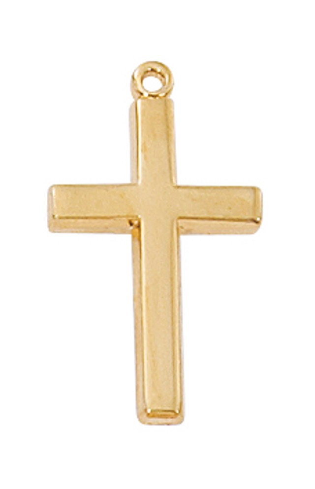 GOLD OVER STERLING SILVER CROSS WITH 16-18" GOLD OVER BRASS CHAIN. INCLUDES DELUXE GIFT BOX. DIMENSION: 3/4"